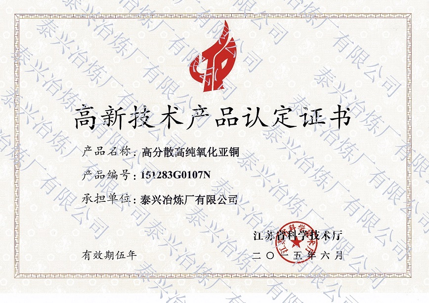 • 我國高端的氧化亞銅生產(chǎn)基地